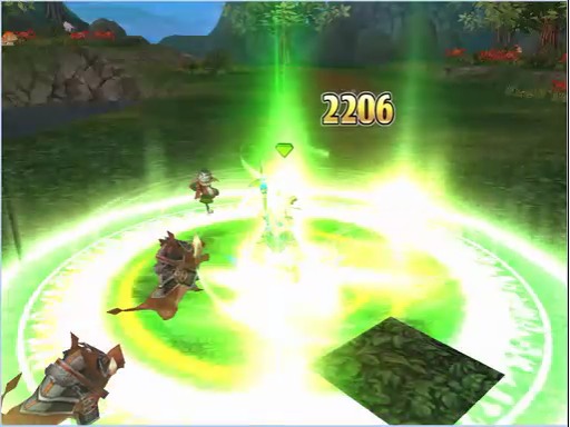 召喚された精霊がナギの周りを飛び回り,一定範囲内の敵に自動的にダメージを与える。