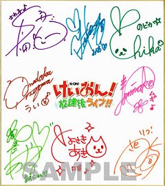 景品:A賞:『けいおん! 放課後ライブ!!』サイン色紙(5人ver)