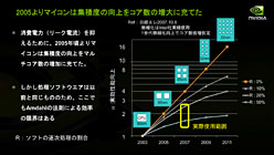 こういった並列処理性能は,科学演算処理などの高速化を可能にすることから,NVIDIAはGT100コアを採用する初代「Tesla」以降,より汎用的な大規模超並列処理ができるよう最適化を図ってきたと,馬路氏は述べている。