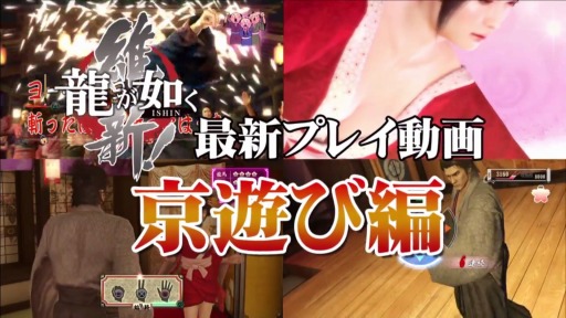 7回目となる今回は、ゲームの舞台となる幕末の京の街を紹介。グラビアアイドル・今野杏南さん演じる遊女・杏南とのミニゲーム対決ができる遊郭「揚屋」や、踊りが楽しめる「日本舞踊」、さらにはシリーズお馴染みのプレイスポット・カラオケが幕末仕様の「歌声酒場(うたごえさかば)」として登場するなど、遊びどころ満載の京の街を分かりやすく解説します。今後も『龍が如く 維新!』の最新映像を公開していきますので、引き続き「龍が如く 維新! 最新プレイ動画」にご期待ください!