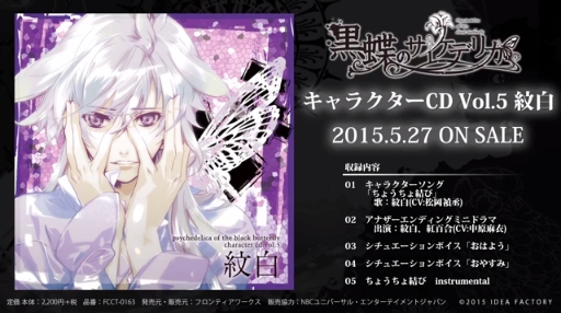 Vol.5 紋白(CV.松岡禎丞)のジャケット画像、収録内容公開、キャラクターソングの試聴開始