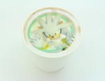 サイキックを発動するシルバーをあしらった、カフェモカ。コップの丸いフチが、まるでシルバーの作り出すバリアーのよう!?