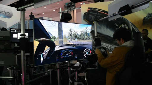 どちらの試遊台も選べるゲームモードは同じで,通常のロードレース,海岸線を爆走するレース,ドリフトチャレンジ,オフロードレースが連続でプレイできた。