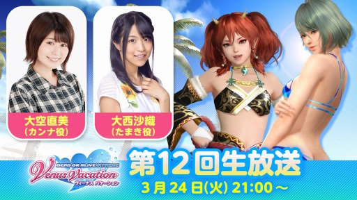 さらに、第12回公式生放送「隊長さん、オーナーさん大集合!アクトレスとヴィーナスのコラボパーティー」の実施が決定いたしました。当日は「カンナ」役の大空直美さん、「たまき」役の大西沙織さんをゲストに迎え、最新情報を皆さまへお届けいたします。株式会社コロプラから配信中の『アリス・ギア・アイギス』とのコラボレーションの詳細発表や「第3回ヴィーナスフォトコンテスト」の結果発表を行いますので、ぜひご覧ください。