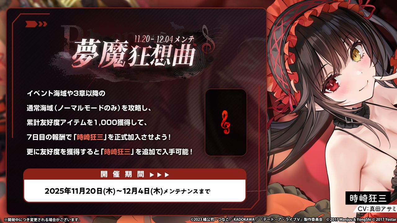 「アズールレーン」×「デート・ア・ライブV」コラボイベントがスタート。夜刀神十香をはじめとする7名がコラボ艦船として入手できる