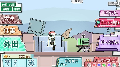 育成シミュレーションゲームだ。ゴミ捨て場で目覚めた謎のロボット少女が,ロボットバトルを勝ち抜いてチャンピオンに挑む物語が描かれる。
