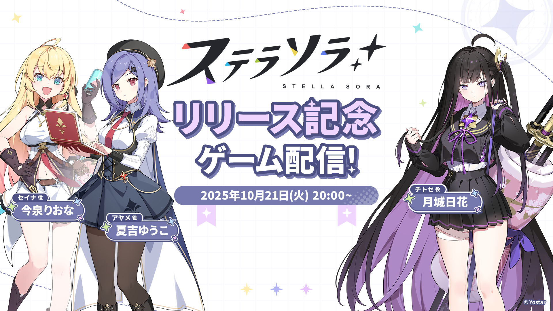 「ステラソラ」,公式番組「『ステラソラ』リリース記念 ゲーム配信!」を本日20:00から配信。セイナ役の今泉りおなさんらがゲームプレイに挑戦