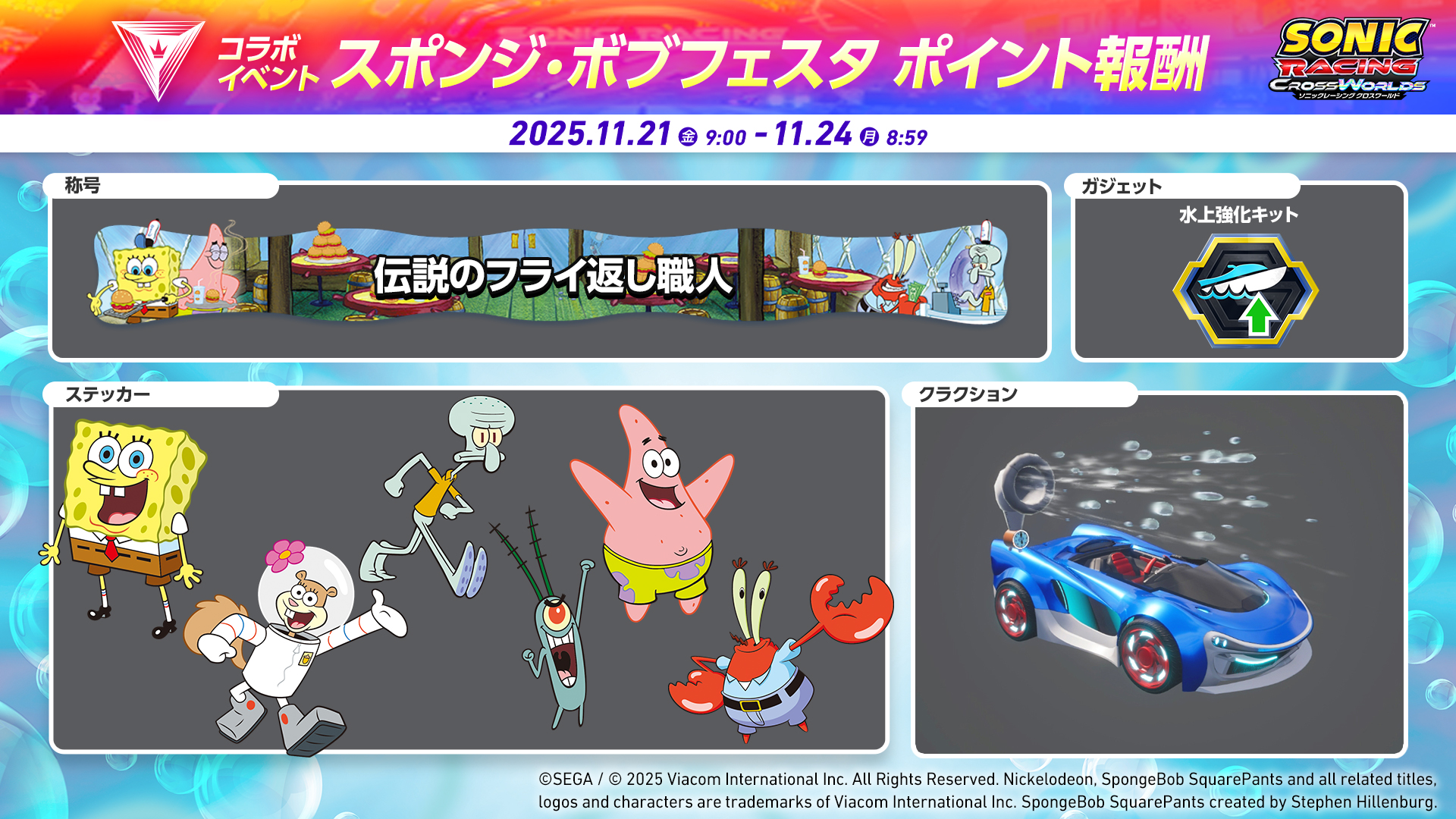 [プレイレポ]「ソニックレーシング クロスワールド」にスポンジ・ボブ,本日より参戦。新キャラクター2人や海中で展開する新コースの走りに注目