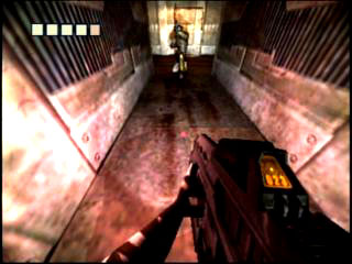 PCではすでに「DOOM III」などがリリースされちゃったこともあって,"業界最高レベル"なんていうつもりはサラサラないが,地面や壁にはキチンとバンプマッピングが施され,なんといっても光と陰のコントラストが非常に美しい。リディックが"闇好き"なこともあり,ゲームは全般的に暗め。それがかえって光やグレアを惹き立てる結果となっており,"マズルフラッシュでモンスターの姿が一瞬浮かび上がる"といったイヤ〜な演出もある。なぜか時折ひどいジャギーが発生するが,グラフィックスは押しなべて美しい。暗視義眼使用時の,エッジがぼやけて青みがかった世界は一見の価値ありだ。