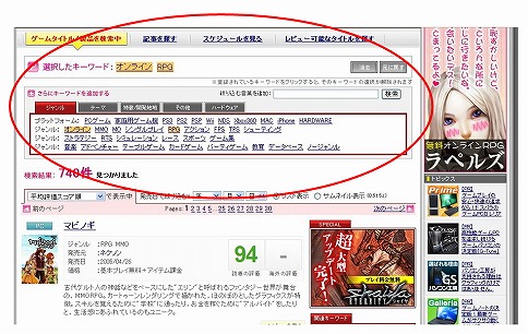 ※キーワードを右クリックすると,「その条件を含まない」というNOT検索もできます(キーワード表示の前にマイナスが付きます)。ちょっと特殊な機能ですが,うまく使えば,好みのゲームや記事が簡単に探せるかもしれません。